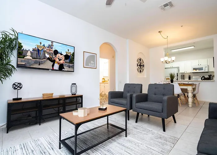 The 2-room Family Friendly L 3Br L Condo Near Disney Orlando provides easy access to various city attractions, such as the Windsor Hills, situated just 5 minutes' walk away. The apartment offers the perfect ambiance for a relaxing stay, with a Jacuzzi and an indoor pool included.